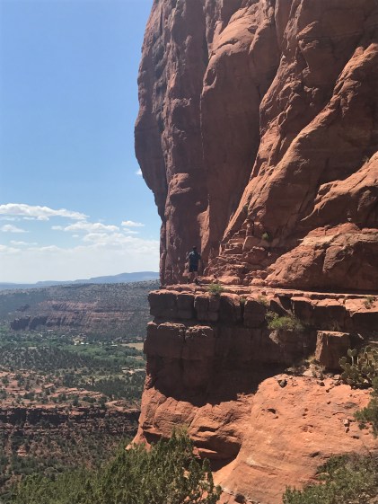 Another MUST Do: Hike to Cathedral Rock! So, first things first, there are a couple different ways to do this hike. We started much farther down my a popular swimming hole/park area. That was definitely the long, but fun, way to start. This hike would be a little iffy for the people who are afraid of heights. Once you get to the actual part of the trail that takes you up to the highest point, it gets pretty steep. I’ll add a picture in sequence of the trail from the start of the steepness to the top. But once you make it to the top, you’re in complete aw! Just looking how incredible the rocks are above and around you makes the hike worth it! But again you need to make sure you have a camel back and snacks! And lots of sunscreen, this hike was a lot less shaded then the Devils Bridge hike!